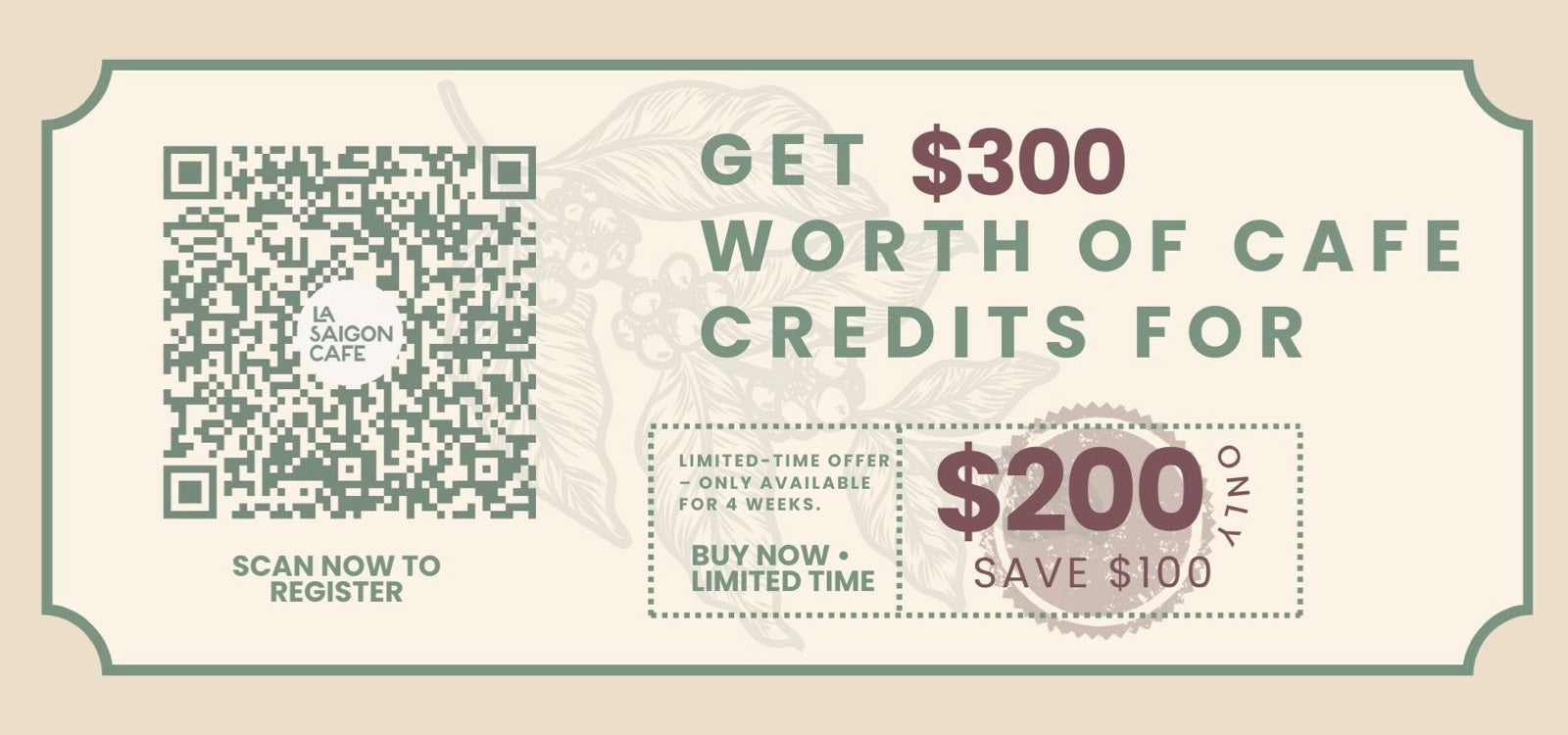 Experience more value every time you dine at La Saigon Café.Top up...