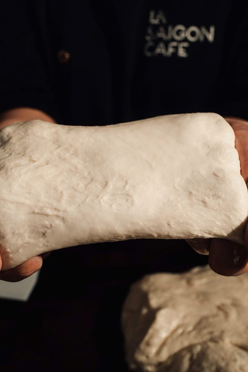 At La Saigon Cafe, every bánh mì begins with dough carefully made from scratch. We gently stretch and prepare each batch by hand, believing that the best bread is born from patience, attention, and honest ingredients.