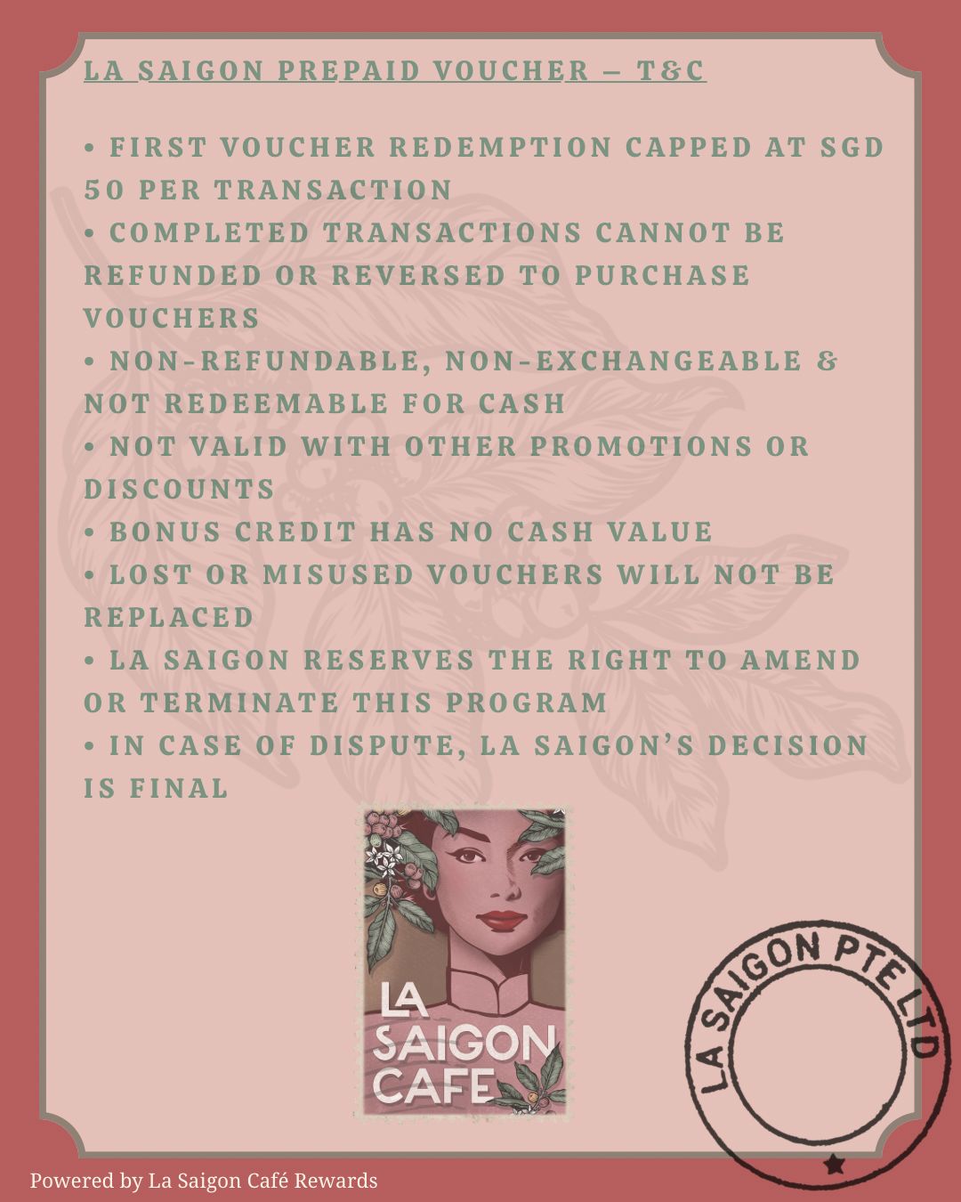 Top up $200 and enjoy $300 worth of spending value at La Saigon Café.